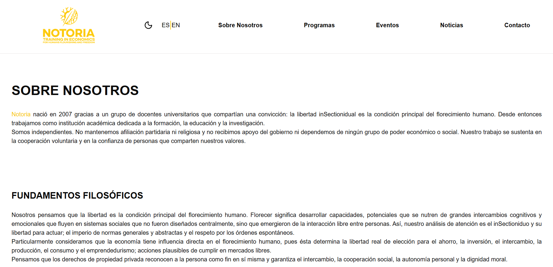 En esta sección se pueden visualizar todos los eventos programados de NOTORIA, ya sean virtuales o presenciales.